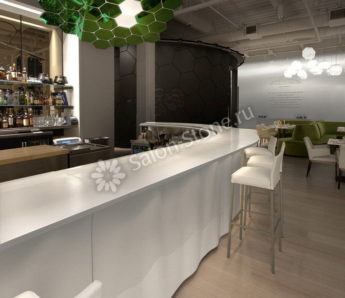 Барные стойки из искусственного камня отвечают всем этим требованиям. Вы можете заказать барную стоку для кофейни любой формы, оттенка и размера. Благодаря отсутствию пор на поверхности, каменные стойки для кофеен экологически безопасны и просты в уходе. А использование различных цветовых пигментов при производстве, позволяет создать мебель под любой интерьер.
